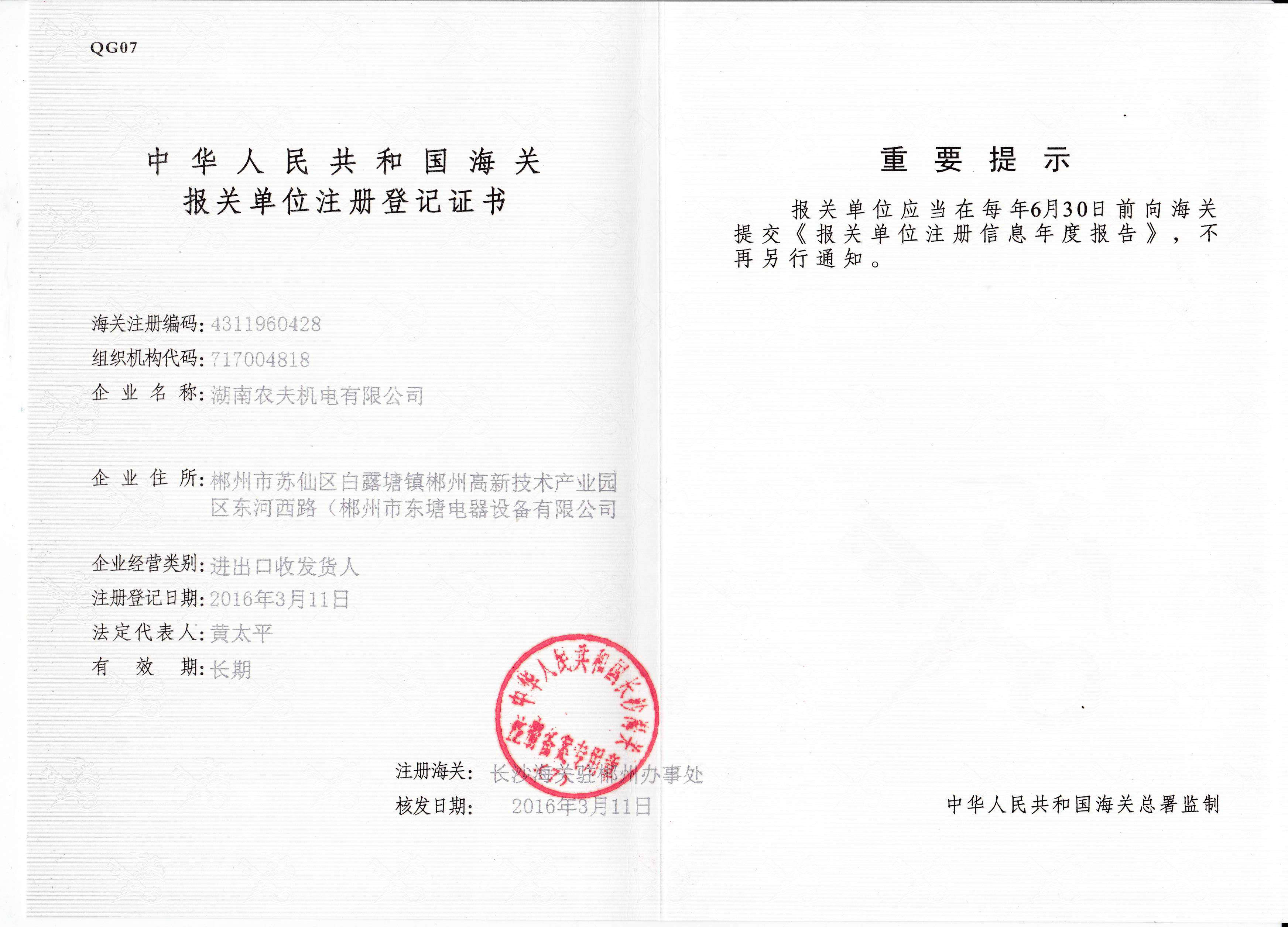 报关单位注册登记证